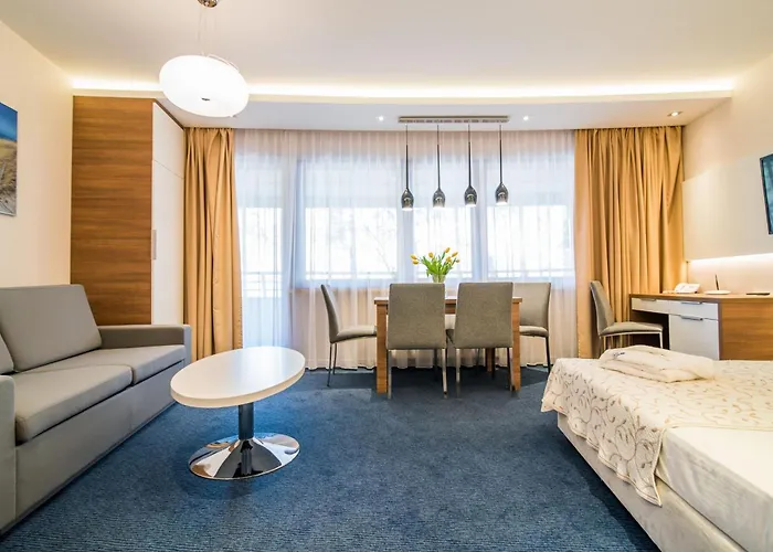 Hotel Dom Zdrojowy Resort & Spa usytuowany jest między Bałtykiem a Zatoką Pucką, oferując przestronne pokoje z balkonem. W obiekcie znajduje się centrum rekreacyjne z basenem oraz saunami. Restauracja serwuje dania kuchni regionalnej oraz śródziemnomorskiej, a plaża oddalona jest o 50 metrów. W pobliżu znajdują się główne atrakcje turystyczne regionu, w tym Władysławowo.